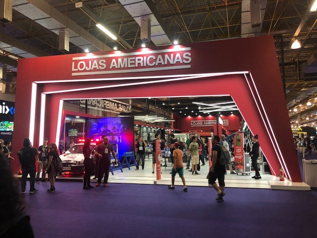 Em 2018, também participei do projeto da Brasil Game Show pelas Lojas Americanas. Nesse ano rolou uma ativação muito legal no stand em parceria com o lançamento do game Resident Evil em que era possível tirar fotos em um carro de polícia com vários zumbis.
